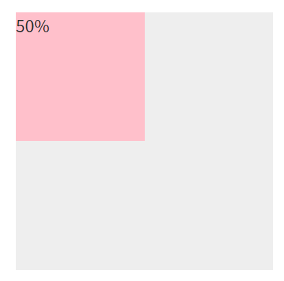 例えば内側のピンクの要素を、width: 50%;でheight: 50%;とすると、親のグレーのエリアから幅が半分、高さが半分のサイズになっていることが分かります。