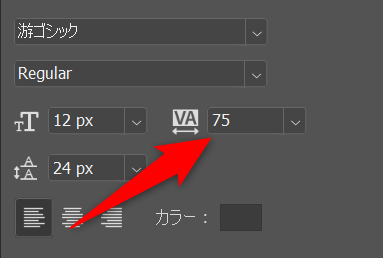これは文字間隔を表していて、CSSに当てはめるなら、1,000で割った数字をletter-spacingに指定してあげる感じになります。上記の例だと、75 / 1000 = 0.075emになります。