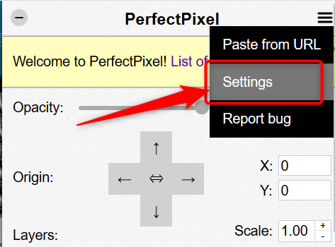 PerfectPixelは、右上にあるピンク色のポリゴン上のアイコンをクリックすることで起動できます。