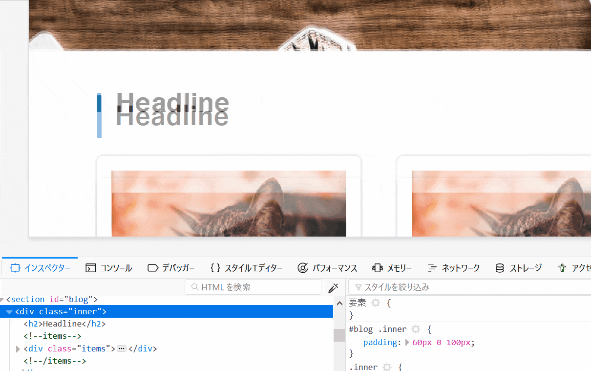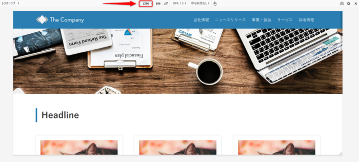 それでは実際にコーディングしたサイトに重ねてみましょう。