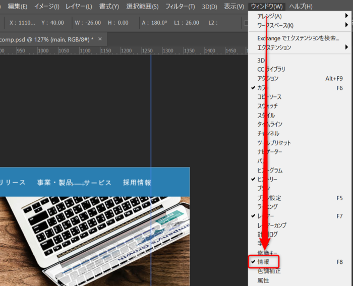 続いてはPhotoshopから色々な値を取得していく方法です。正確なコーディングをするには正確な値を取得しないといけません。
