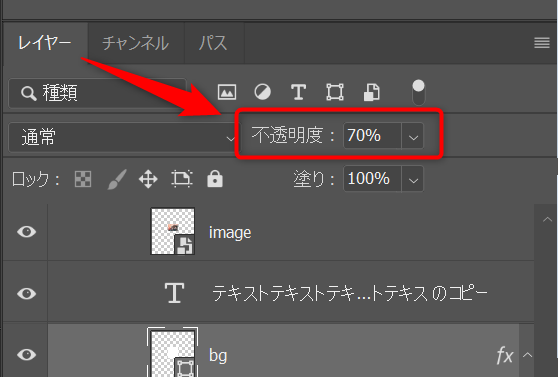 オブジェクトを選択すると、レイヤーパネルの該当箇所を薄くハイライトされていることが分かります。