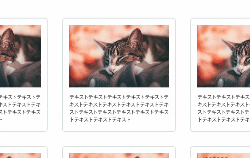 例えばこの猫のカードを囲っている灰色の枠はボーダーっぽく見えますが、実は影でした。ボーダーなら属性パネルに情報が出てきますが、今回は線使っていないって指定になっていたかと思います。