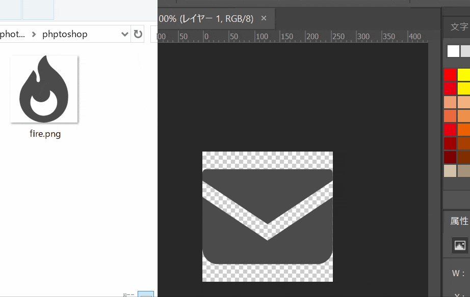 2つ目は、画像をPhotoshopにドラッグ & ドロップで開く方法です。ただ、既に操作しているタブがある場合はレイヤーとして追加されてしまうので、新しいタブの辺りにドロップしてあげてください。