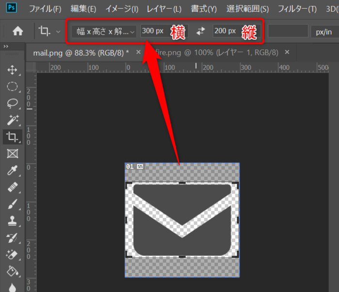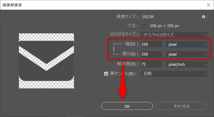 幅と高さの間にあるくさびみたいなアイコンはクリックすることで、縦横比を維持したままサイズを変更できるので、選択しておくことをおすすめします。