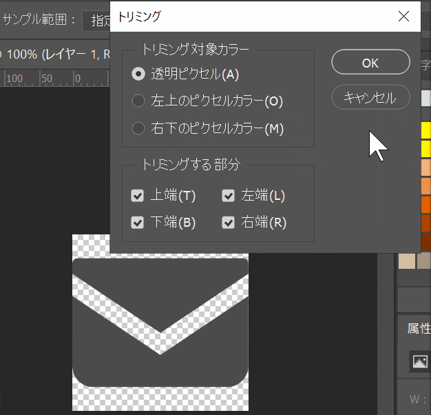 透明以外の場合は、左上や右下のピクセルカラーなどを選択していい感じにトリミングしてくれます。