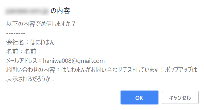 「送信してもよろしいですか?」のポップアップの内容を変更したい