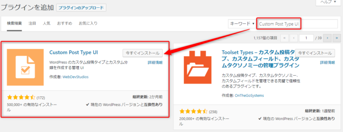 テンプレートを量産するための投稿タイプを作ります。「Custom Post Type UI」というプラグインを使ってサクッと作ってしまいましょう!