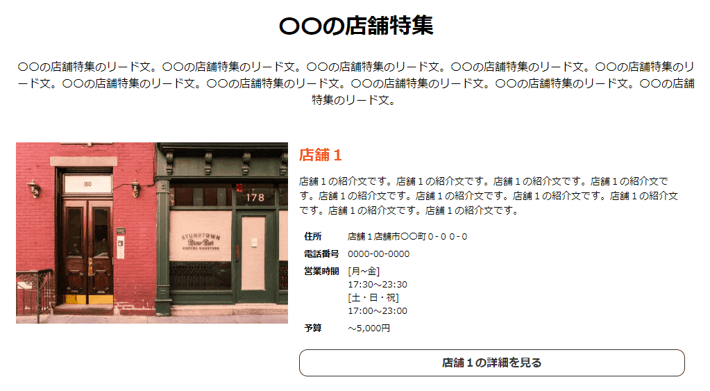 | 店舗紹介1 | store-detail1 | テキストエリア |