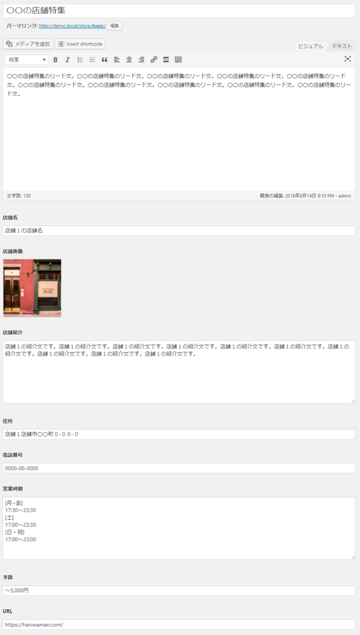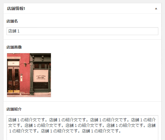 それでは、「store」投稿タイプ編集ページにカスタムフィールドが設定できているか見てみましょう。