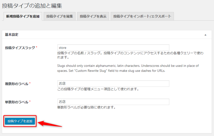 「store」という投稿タイプを作る