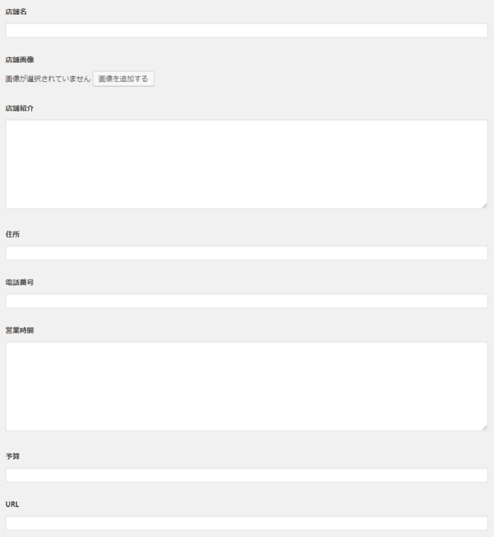 お店 → 新規追加 を開いて見てみると、先ほど設定した項目が追加されているのが分かります!