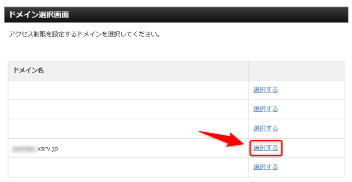 ドメイン選択画面から「hogehoge.xsrv.jp」を選択します。