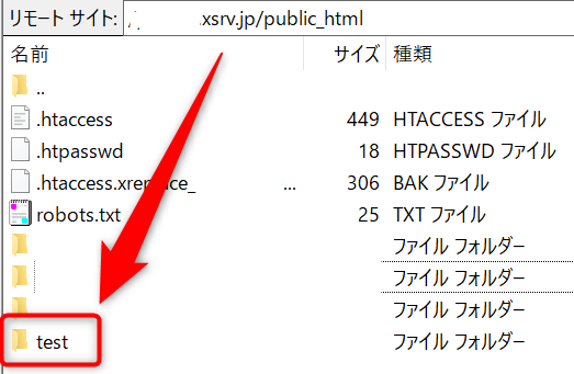 その前に、アップロードする先のフォルダを作成しておきましょう。ベーシック認証を設定する対象のフォルダでもあります。