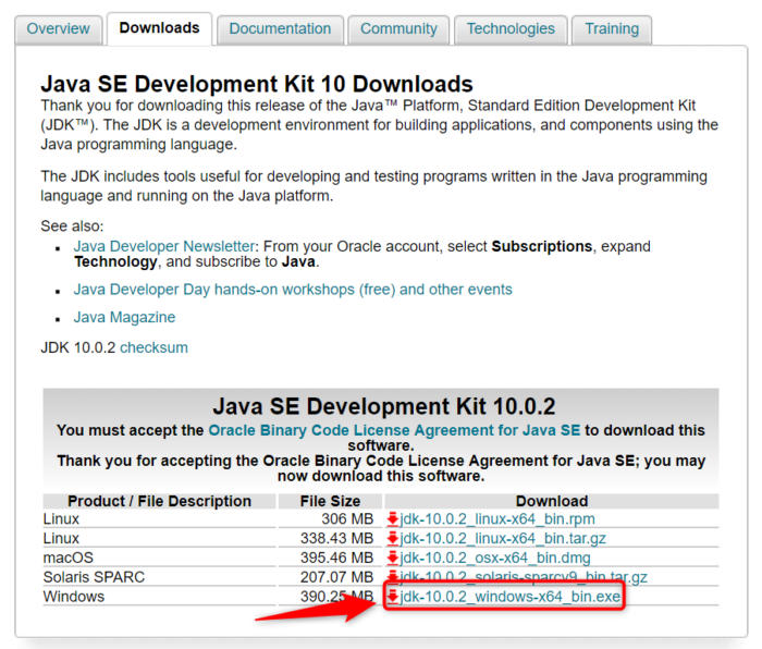 「Accept License Agreement」にチェックを入れて、Windowsのダウンロードリンクからインストールファイルんをダウンロードします。