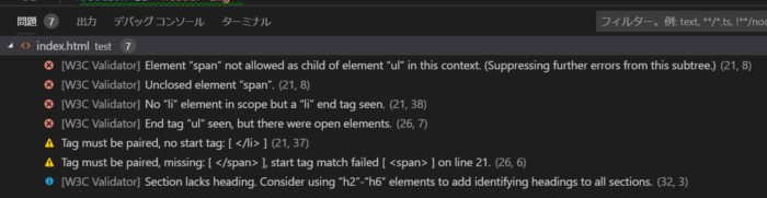 VSCode内でHTMLとCSSのコードをW3Cチェック(バリデート)させる方法でした。公式の2つのサイト開く手間がなくなるので、チェックがとても楽になりますよ!