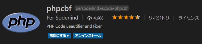 PHPをフォーマットするための拡張機能をVSCodeに導入します。