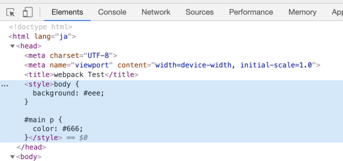 それでは早速ローダーを使ってSassファイルをインラインで読み込んでいきましょう。インラインとは<head>内に直接記載されるCSSのことですね。