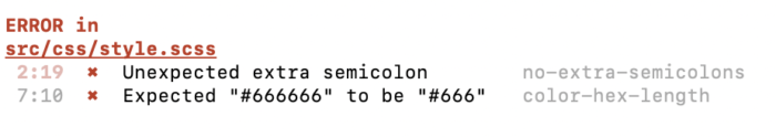 しっかりエラーとして出力され、stylelintが機能していることが分かります。