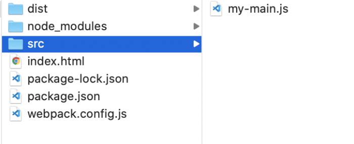 どうやらwebpackはデフォルトだとsrcフォルダ内にmy-main.jsが必要みたいです。