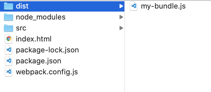 そしてdistフォルダを見てみると、、、my-bundle.jsというファイルが作成されています!