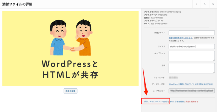 add_action( 'template_redirect', 'my_template_redirect' );添付ファイルについては、メディアの「添付ファイルのページを表示」から確認できるのでぜひ試してみてください!