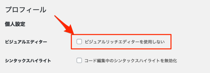Gutenbergの象徴であるブロックエディタを使いたい場合は、必ず「ビジュアルリッチエディターを使用しない」のチェックは外しておくようにしましょう。