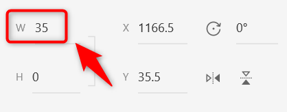 右のエリアの「W」か「H」の値が線の長さになります。(横に引けば「W」、縦に引けば「H」)